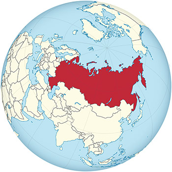 Russland (russisch Россия [rɐˈsʲijə] Audio-Datei / Hörbeispiel Aussprache?/i, Transkription Rossija), amtlich die Russische Föderation (oder der russischen Bezeichnung entsprechend Russländische Föderation; russisch Российская Федерация, Audio-Datei / Hörbeispiel Aussprache?/i, Transkription Rossijskaja Federazija)[A 3] ist ein Bundesstaat in Osteuropa sowie in Nordasien. Mit etwa 17 Millionen Quadratkilometern ist Russland flächenmäßig der größte Staat der Welt und umfasst etwa ein Neuntel der Landmasse der Erde. Mit 144,5 Millionen Einwohnern (2019) steht es an 9. Stelle der bevölkerungsreichsten Länder und ist zugleich eines der am dünnsten besiedelten.